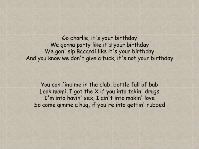 Go Go Go Go Go Go Go Shorty It S Your Birthday We Gonna Party Like It S Your Birthday We Gonna Sip Bacardi Like It S Your Birthday And You Know We Don T Give