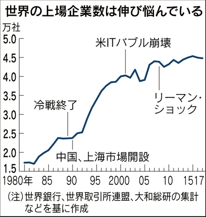 さらば株式市場 世界の上場企業数減少に転じる 日本経済新聞
